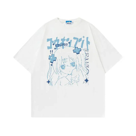 Oversized Short Sleeve T-shirt – Bold Print, Anime Style