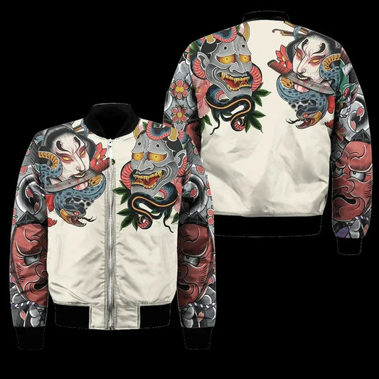 Samurai Oni Mask Bomber Jacket – Fierce Design, Anime Style